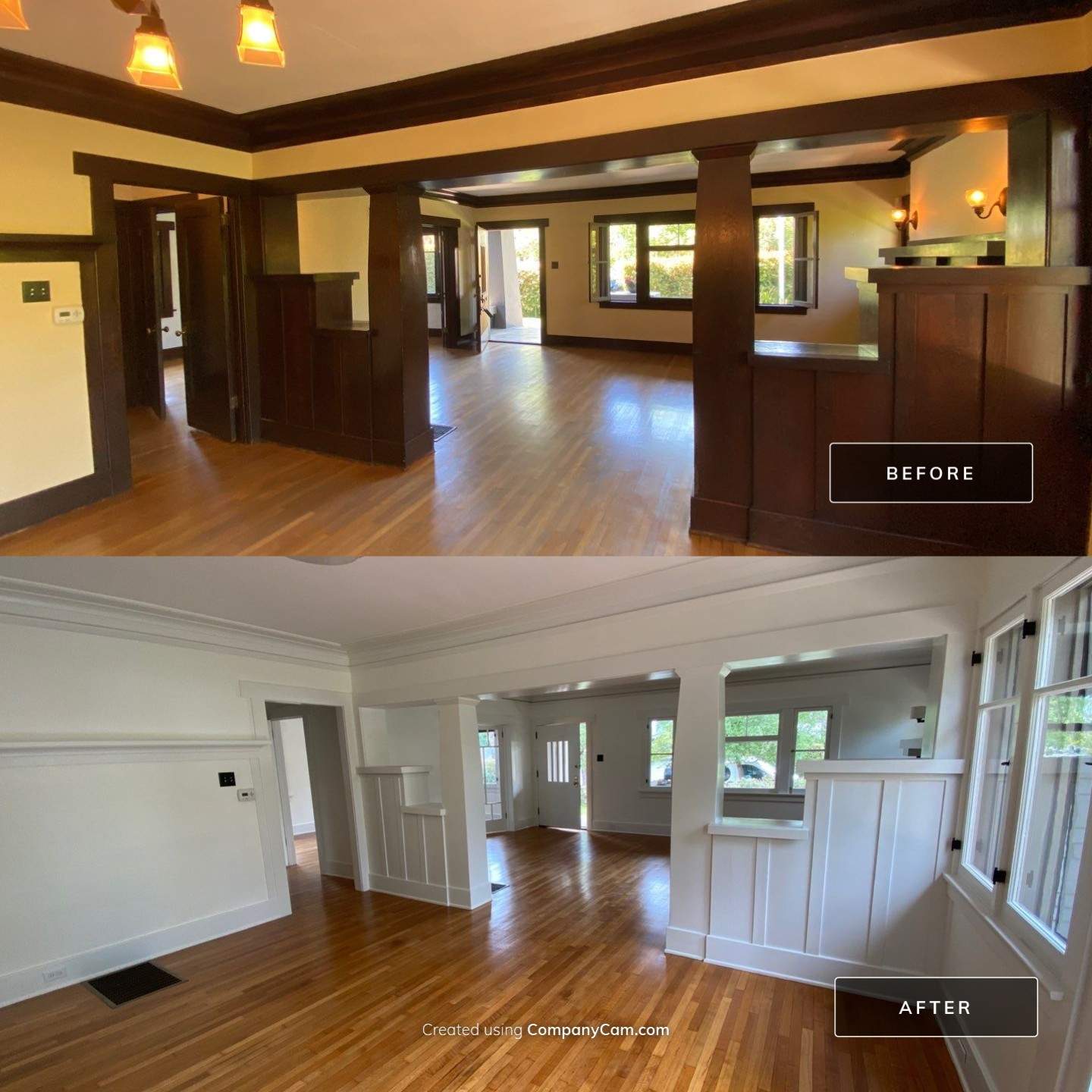 Bear Island prepped, full primed and painted over the stained wood giving it a refreshing look.